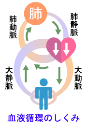 Vol.01 心臓と血圧のはなし![]() 心臓は、収縮と拡張を1日に約10万回も繰り返し、全身に血液を送り出している。血液は、心臓からまず大動脈に送り出され、さらに細かく枝分かれした細動脈を通って、最後は毛細血管に流れ込む。 血液には、全身の臓器や気管に酸素や栄養を送り届けるだけでなく、炭酸ガス(二酸化炭素)や体に不必要になった物質を細胞から受け取る役目がある。全身を回って炭酸ガスなどで汚れた血液は、静脈を通って心臓にもどる。このように、血液が心臓から送り出されて、再び心臓にもどってくるまでの循環を「体循環」という。 全身を回って心臓にもどった血液は、肺動脈を通って肺に送られる。肺で炭酸ガスが排出され、肺内の空気から大量の酸素を取り入れ、肺静脈を通って、再び心臓にもどる。この循環を「肺循環」という。 このようにして、血液は心臓を中心として絶えず体内を循環している。その循環を支えているのが「血圧」である。 体の隅々にまで血液を送るには血液に圧力をかけて送り出す必要がある。この血液循環に必要な血液の圧力が「血圧」で、血管の中を流れる血液の勢いが動脈の壁に与える圧力を指す。