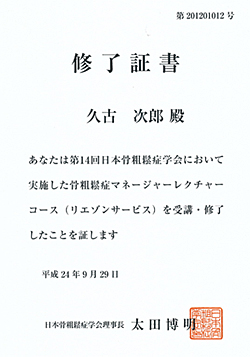次は、遺伝によるもの。 親がチョットしたことで骨折した経験のある方。 骨密度・骨強度の低下によるもの。 やはり、一般的なことです。ただ、“自分が骨密度・骨強度の測定の経験がない”という方も多いそうです。 (当店の骨密度・骨強度の測定会をぜひご利用ください。) 今までは、骨粗鬆症=骨密度の低下でしたが、今は、骨強度の低下に、変わっています。 骨粗鬆症にかかっている人は、1,280万人と言われていますが、実際に治療を受けている人は、わずか20万人しかいないそうです。(毎年90万人以上の人が骨粗鬆症になっているそうです)。 まだ間に合う、今なら牛乳、運動で! 大切な“骨”やさしくケアしてあげて下さい! 今回私は、骨粗鬆症マネージャーの講習を受け修了証書を頂きました。 ![]() これからも骨粗鬆症になる人が増えないように頑張りたいと思います。 次号は東大整形外科の先生と栄養大学の教授から直接聞いた話を書きたいと思います。